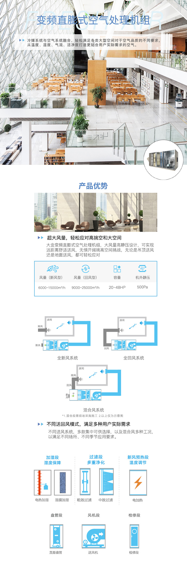 大金空調(diào)變頻直膨式空氣處理機(jī)組的主要性能特點(diǎn):